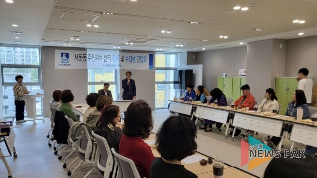 뉴스팍 배상미 기자 | 수원시 권선구 서둔동 주민자치회는 지난 27일 신청사에서 주민자치센터 프로그램 운영 활성화를 위해 2026년 권선구 서둔동 주민자치센터 강사 및 수강생 간담회를 개최했다.