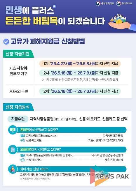 시 관계자는 “지원금 신청 과정에서 시민 불편이 발생하지 않도록 현장 대응과 홍보를 지속적으로 강화하고 있다”며 “대상자가 누락 없이 지원을 받을 수 있도록 끝까지 세심하게 관리하겠다”고 밝혔다.