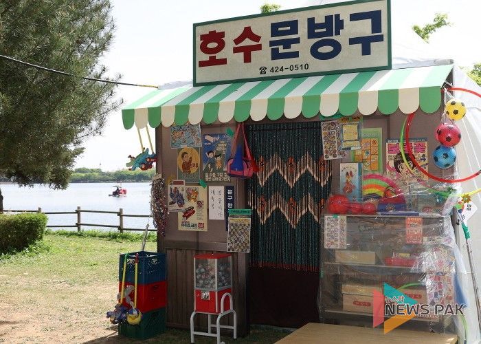 정원 내 ‘호수 문방구’는 추억의 군것질과 소품을 진열·판매해 방문객들의 어린 시절을 자연스럽게 떠올리게 한다. 향수를 자극하는 간식을 즐기며 정원에 머무르면서 서로의 추억을 이야기하고 세대 간 공감을 나누는 모습이 이어진다.