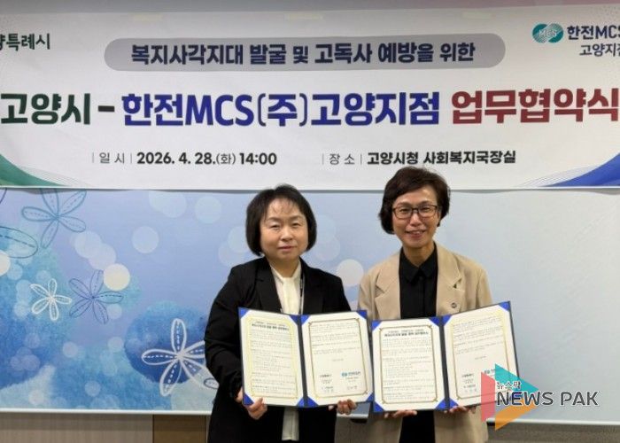 뉴스팍 배상미 기자 | 고양특례시는 지난 28일 시청 사회복지국장실에서 한전MCS(주) 고양지점과 위기가구 발굴 및 지원을 위한 ‘온(溫)마음 복지스위치 ON’ 업무협약을 체결했다.