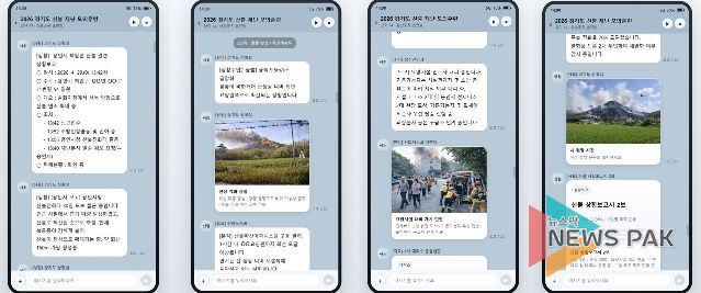 뉴스팍 배상미 기자 | 경기도는 29일 모바일 메신저(카카오톡)를 활용한 산불 대응 모의훈련을 실시했다. 모바일 기반의 재난 대응 훈련은 이번이 처음으로, 장소에 구애받지 않고 신속하게 상황을 전파하고 즉각적으로 대응하는 실전 역량을 강화하기 위해 마련됐다.
