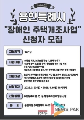용인특례시, 4월 6일까지 장애인 주택 개조 지원 신청 접수