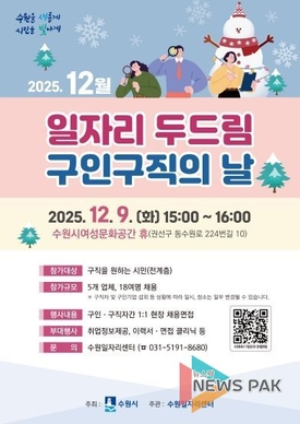 수원특례시, 12월‘일자리 두드림 구인·구직의 날’개최… 5개 업체 참여해 18명 채용