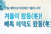 뉴스팍 배상미 기자 | 경기도와 경기도주식회사가 공동 운영하는 경기도 공공배달앱 배달특급이 겨울을 맞아 12월 한 달간 ‘겨울이왔동(冬)’ 소비자 할인 프로모션을 진행한다. ‘겨울이왔동(冬)’ 소비자 할인 이벤트는 ‘통 큰 세일’ 프로모션 종료 등으로 아쉬움이 남는 소비자들의 편익을 증대하기 위해 마련했다. 배달 특급 전체 회원, 전체 서비스 지역을 대상으로 1만2천원 주문에 사용가능한 3천원 할인 쿠폰을 예산 소진시까지 1일 1인 1회 지급한다. 한편 배달특급의 모든 이벤트는 해당 상단 배너 기능을 통해 확인 가능하며, 지역에 따라 할인 조건과 금액이 달라질 수 있어 사전 확인이 필요하다.