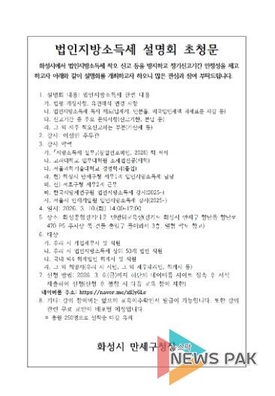 화성특례시 만세구청, 세무대리인 대상 법인지방소득세 설명회 개최