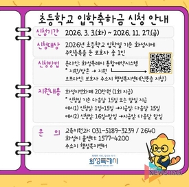 화성특례시, 2026학년도 초등학교 입학축하금 지원