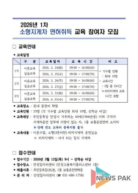 안성시, 2026년 1차 소형 지게차 면허 취득 교육생 모집