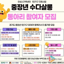 안성시 가족센터, 1인 가구 대상 '중장년 수다살롱' 참여자 모집