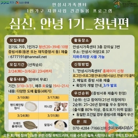 안성시 가족센터, 1인 가구 지원사업 건강돌봄 프로그램 '심신, 안녕 1기' 청년 참여자 모집