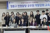 뉴스팍 배상미 기자 | 수원시 영통구는 지난 25일, 영통구청 상황실에서 구청 및 12개 동 민원 담당 공무원을 대상으로 수원가정법원과 함께하는 역량 강화 교육을 실시했다. 이날 특별 초빙된 수원가정법원 박민숙 사무관과 유신임 행정관은 갈수록 복잡하고 다양해지는 가족관계등록사무를 개념부터 관련 법령까지 체계적으로 교육했으며, 업무처리 시 유용한 노하우 공유, 질의응답 등의 시간도 마련했다. 특히 실무에서 자주 접하는 기본적이고 중요한 사례 중심으로 민원 담당자들이 이해하기 쉽게 교육을 통해 실무의 어려움을 해소하고, 신속하고 정확한 업무 처리에 대한 자신감을 높였다. 장수석 영통구청장은“가족관계등록부는 국민의 신분과 정체성을 증명하는 유일한 공적 자료로, 직원들의 전문성 부족이 시민들의 불편으로 이어지지 않도록 수원가정법원과 함께 민원담당 공무원의 역량 강화에 최선을 다하겠다”고 밝혔다. 영통구는 앞으로도 직원들의 전문성과 자신감을 강화하여 수준 높은 민원행정 서비스를 실현해 나갈 계획이다.
